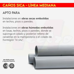 Por su versatilidad el sistema de caños PVC, pueden ser utilizados en: Obras secas (cielorrasos, placas de yeso), obras humedas (hormigón, losas), obras superpuestas al interior o al exterior (montaje superficial)
