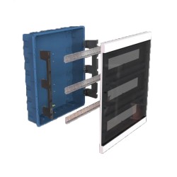 Tablero eléctrico plástico FORLI diseñado para embutir, ideal para el alojamiento de interruptores termomagnéticos, diferenciales y otros dispositivos de montaje DIN.