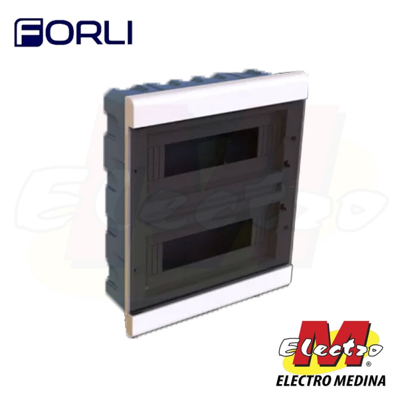 Tablero eléctrico plástico FORLI diseñado para embutir, ideal para el alojamiento de interruptores termomagnéticos, diferenciales y otros dispositivos de montaje DIN.