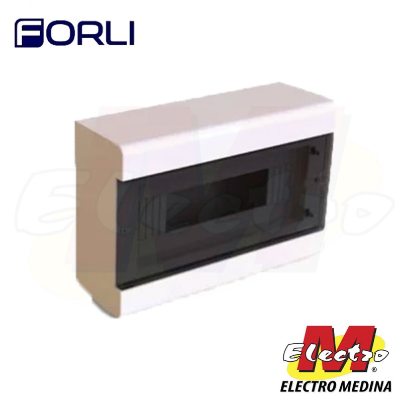 Tablero plástico FORLI diseñado para instalación de superficie, ideal para el alojamiento de interruptores termomagnéticos, diferenciales y otros dispositivos de montaje DIN